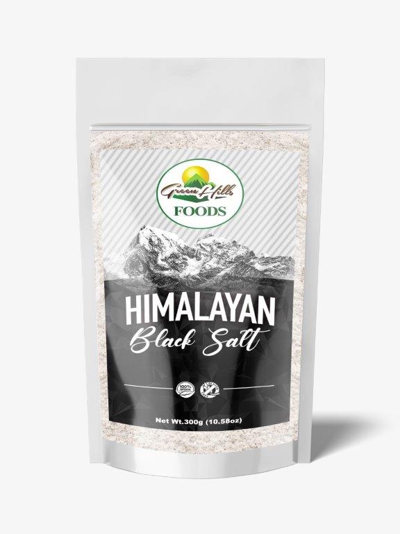 Green Hills Foods Himalayan Black Salt or (Kala Namak) is a type of rock salt with a salty and pungent-smelling condiment that is used through South Asia. It is found mostly in the Himalayas of Nepal. The condiment is composed largely of sodium chloride with several other components lending the salt its colour and smell.