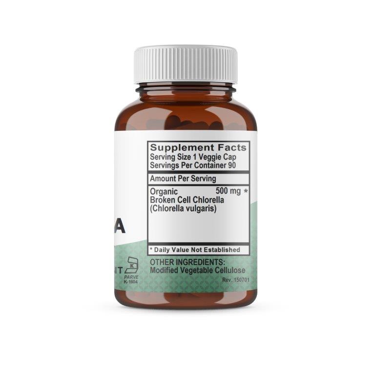 Chlorella (Chlorella Pyrenoidosa) 500mg Chlorella is an emerald green, single-celled freshwater algae that grows naturally in lakes and ponds. It contains high amounts of the pigment chlorophyll, which is responsible for providing its signature green color. Chlorella is extremely nutrient-dense, which is why it is classified as a superfood.