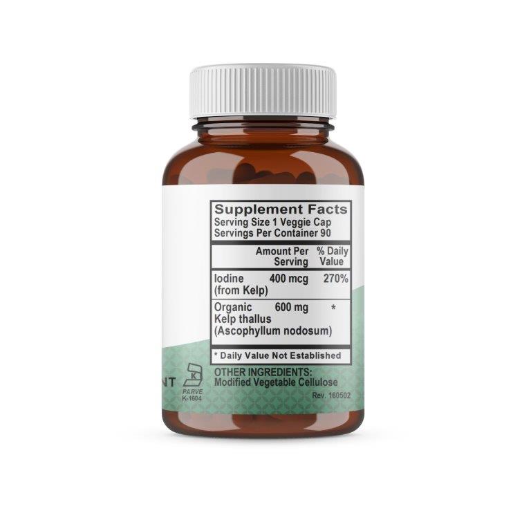 Kelp, 1000mg (Macrocystis pyrifera) also known as brown algae is a seaweed that can be found deep under the sea. It is a part of a group of seaweeds known as vegetable of the sea that are harvested for their medicinal values. These include dules, nori, sea palm etc. Rich in minerals, amino acids and vitamin B-12, it is believed that kelp may help fight obesity and in an essentials ingredient for the healthy thyroid.*